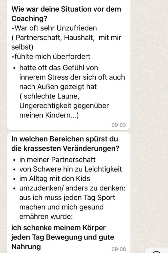 • Kontinuierlicher Support zwischen den Terminen über What`s app/ Telegramm